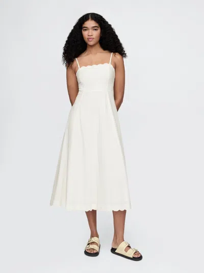 Linen-blend Scalloped Midi Dress In Off White