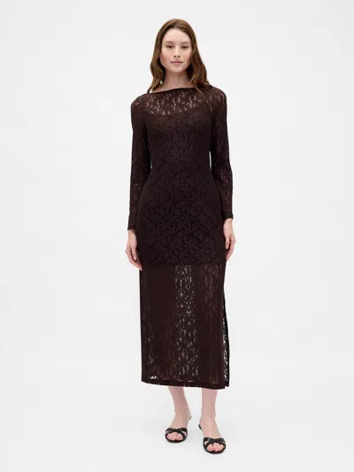 Lace Bell-sleeve Maxi Dress In Brown