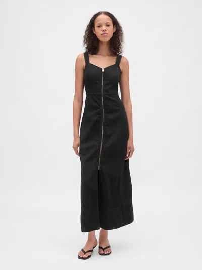 Ultrasoft Denim Zip-front Maxi Dress In Black