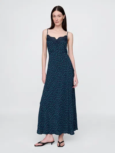 Crepe Lace-trim Sweetheart Maxi Dress In Navy Ditsy Floral