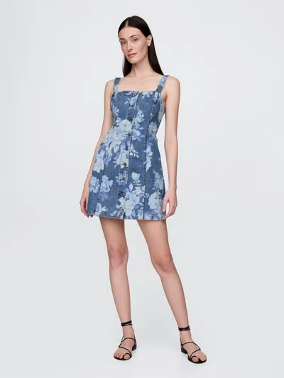 Denim Floral Mini Dress In True Indigo Floral