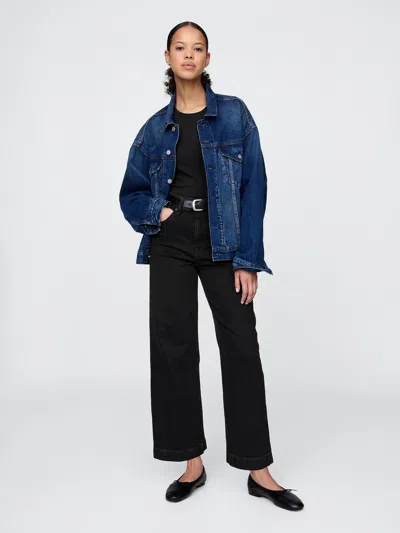 Curvy High Rise Stride Wide-leg Ankle Jeans In Black Wash