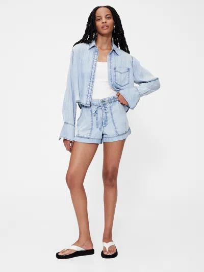 Ultrasoft Denim Easy Shorts In Cyan Blue