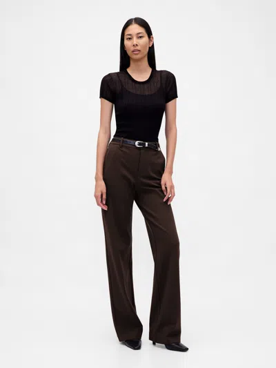 High Rise Ponte Wide-leg Pants In Brown