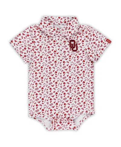Baby Boys And Girls Crimson Oklahoma Sooners Tom Allover Print Performance Polo Shirt Bodysuit In Red