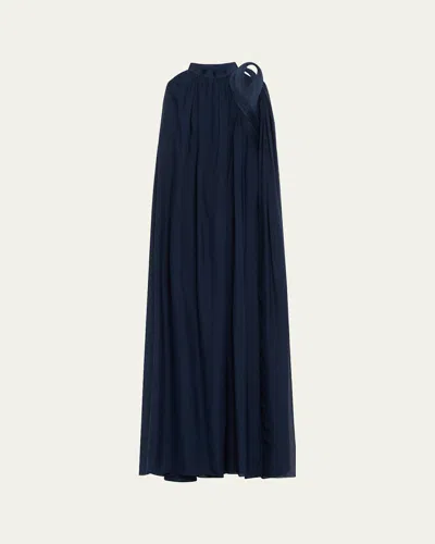 Cypress Sculpted Silk Chiffon Cape Gown In Blue
