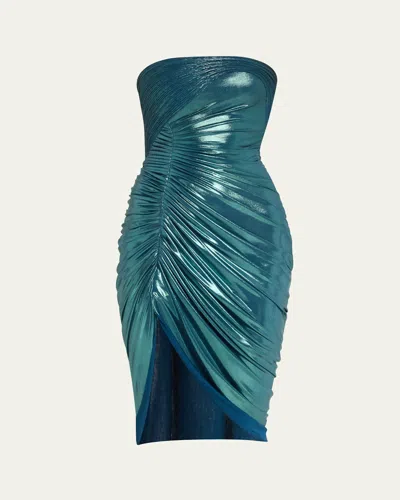 The Reflection Jersey Draped Strapless Dress In Teal