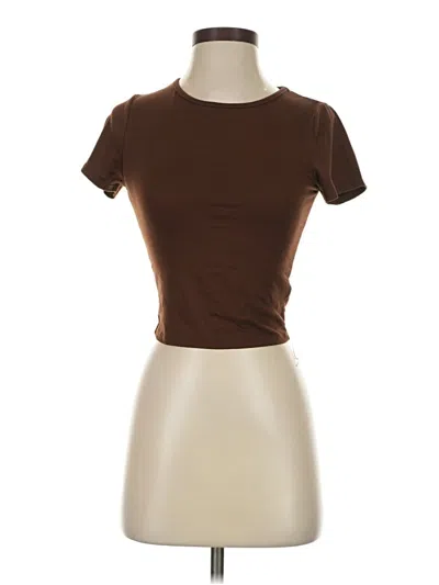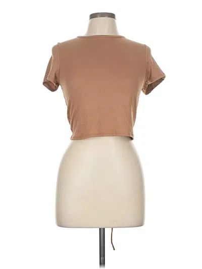 Pre-owned Short Sleeve Top Brown Square Neckline Tops