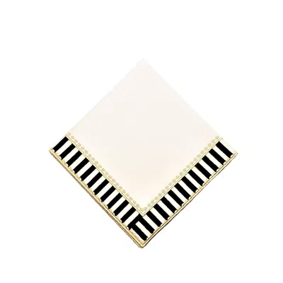 Black / Gold / White Chekered Cloth Napkins - Black & White Embroidered White Linen Napkin Set Of Tw In Multi