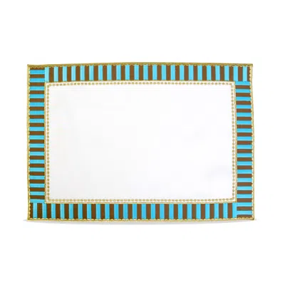 Blue / Grey Blue Checkered Cloth Placemat Set Of Two - Gold Embroidered Blue & Gold Checkers Placema