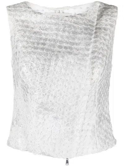 Embossed-finish Sleeveless Blouse In White
