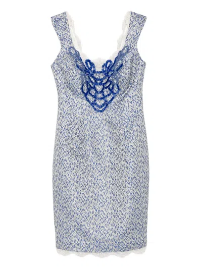 Lace-embellished Mini Dress In Blue