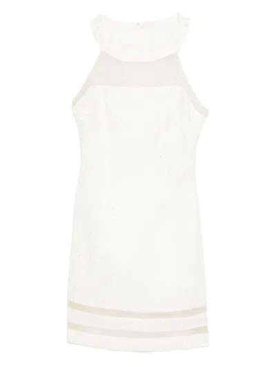 Sheer-panelled Sequinned Dress In White