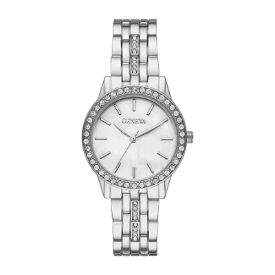 Womens Crystal-accent Bracelet Watch In Silver