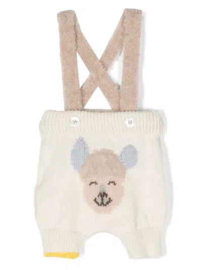 Babies' Intarsia-knit Wool Blend Overalls In Neutrals