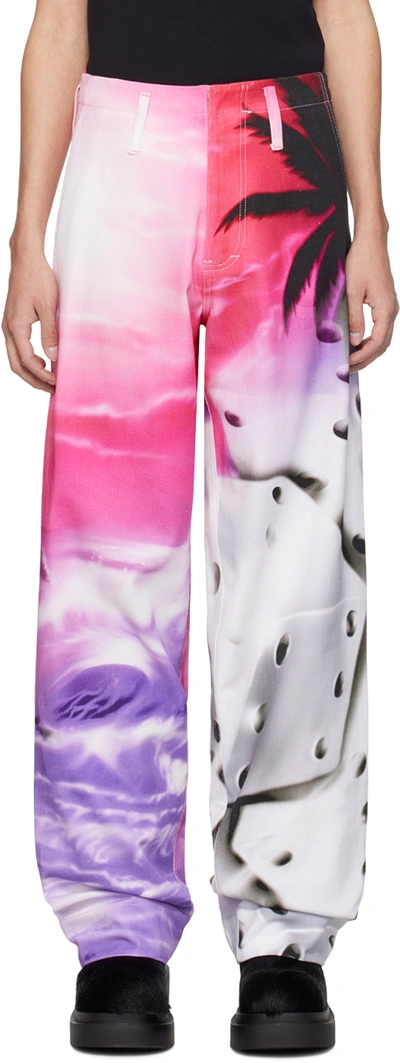 White & Purple Printed Moto Denim Jacket In White/black/purple