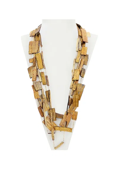 Sculptural Hand-dyed Wooden Necklace With Classic Clasp In Metallic