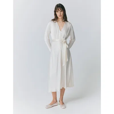 Meryl Long Sleeve Satin Midi Dress In White
