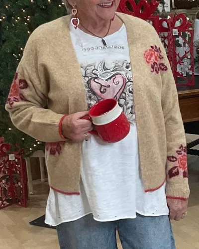 Wool Knit Floral Cardigan In Beige Multi In Neutral
