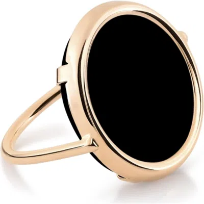 Black Onyx Disc Ring In Gold