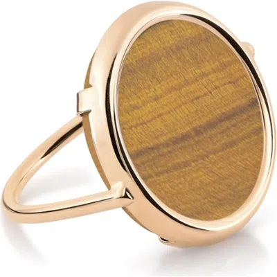 Mini Ever 18k Rose Gold Tiger's Eye Disc Ring In Brown