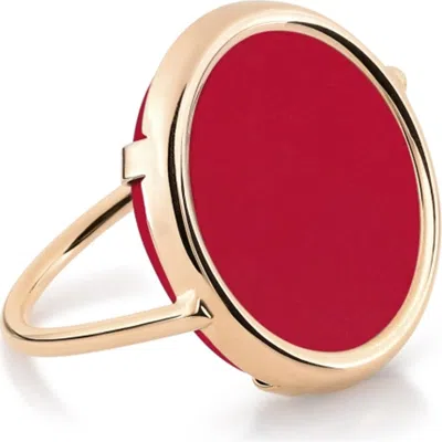 Baby 18k Rose Gold Agate Disc Ring In Red