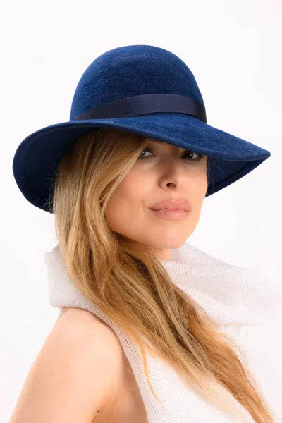 Blue Women's Round Crown Hat With A Wide Brim
