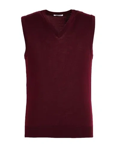 Man Sweater Burgundy Size 44 Merino Wool In Red