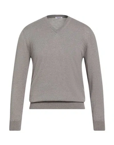 Man Sweater Taupe Size 48 Merino Wool In Gray
