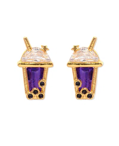 Crystal Gold Plated It's Boba Time Stud Earrings