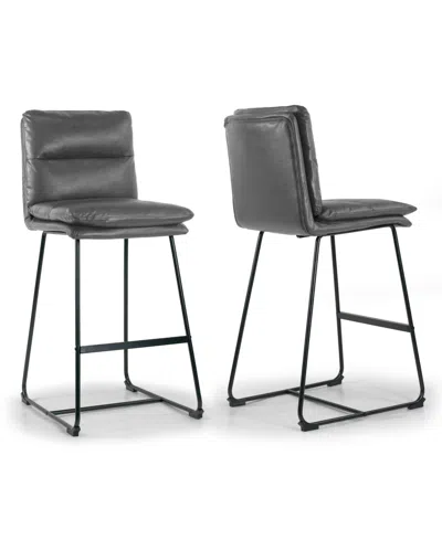 24" Aoi Polyester, Metal Counter Height Stool, Set Of 2 In Grey