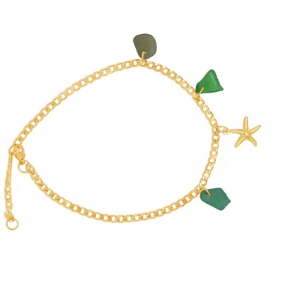 Women's Starfish Anklet With Green Sea Glass