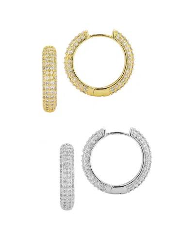 Cubic Zirconia Double Hoop Earrings In Silver