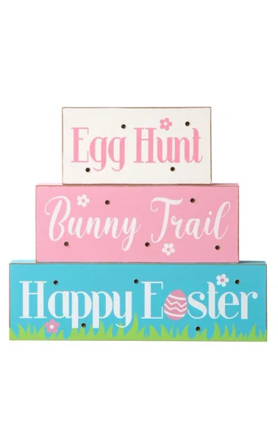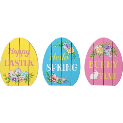 Set Of 3 Easter Wooden Easter Egg Table Decor In Multi