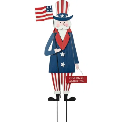 Wooden Patriotic Uncle Sam Yard Stake Wall Sign Or Porch Decor In Multi