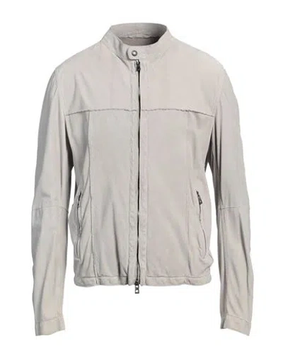 Man Jacket Light Grey Size Xl Leather In Gray