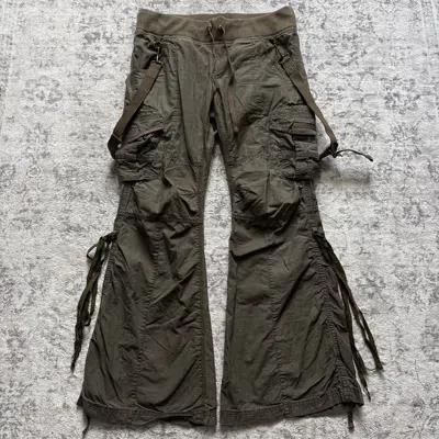 Pre-owned Suspender Parachute Flared Cargo Pants Green W Tassels