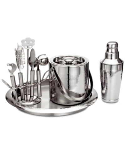 Hammered Stainless Steel 9-pc. Barware Set In Silver