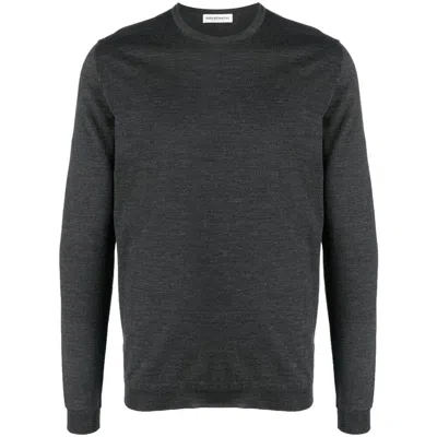 Brown Crew Neck Sweater With Dropped Shoulders In Wool Man