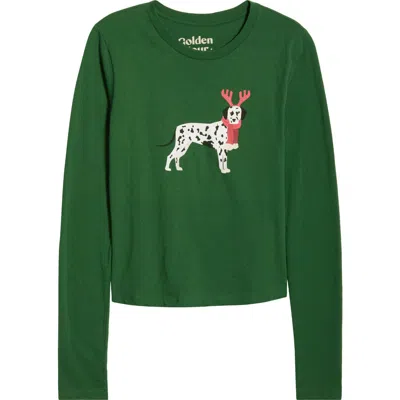 Reindeer Dog Long Sleeve Cotton Graphic T-shirt In Green