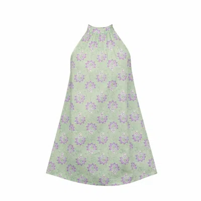 Women's Green / White Vireya Cotton Notched Neck A-line Mini Dress - Sustainable Floral Dress In Multi
