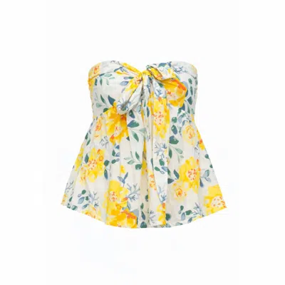 Women's Yellow / Green / White Florea Cotton Front-tie Smocked Back Tube Top In Multi