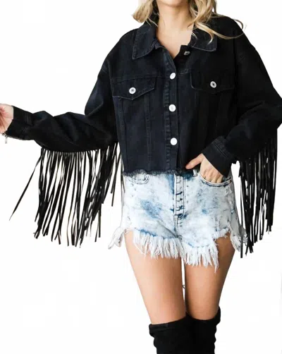 Spencer Fringe Denim Jacket In Black