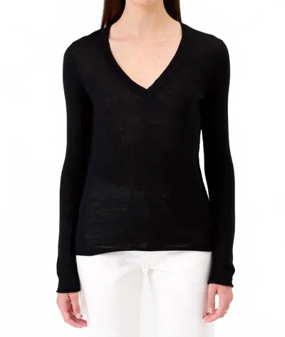 Elise Long Sleeve V-neck Sweater In Black