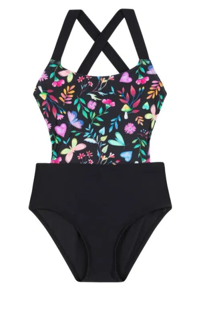 Kids Butterfly Dream Cut Out Cross Strap One Piece In Multi