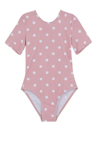 Kids Dot Dot Dot Short Sleeve Open Tie Back One Piece In Pink