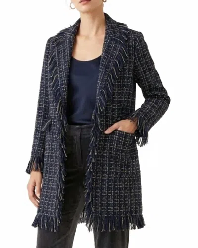 Long Metallic Tweed Jacket With Fringe In Blue Multi