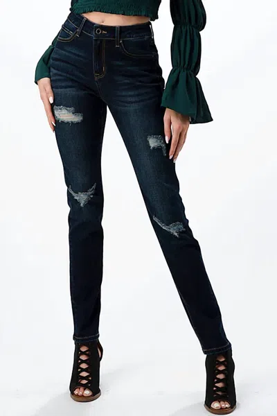 Distressed Skinny Jean In Dark Wash In Blue