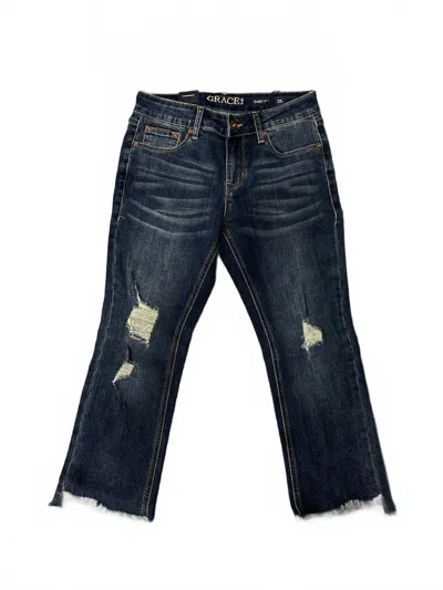 Women's Distressed Denim Capri Jean In Dark Wash In Blue