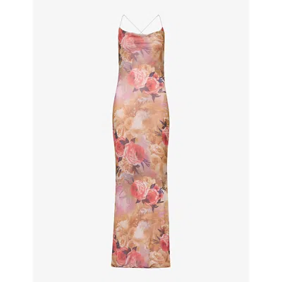Womens Multi Elizabeth Rose Floral-print Mesh Maxi Dress